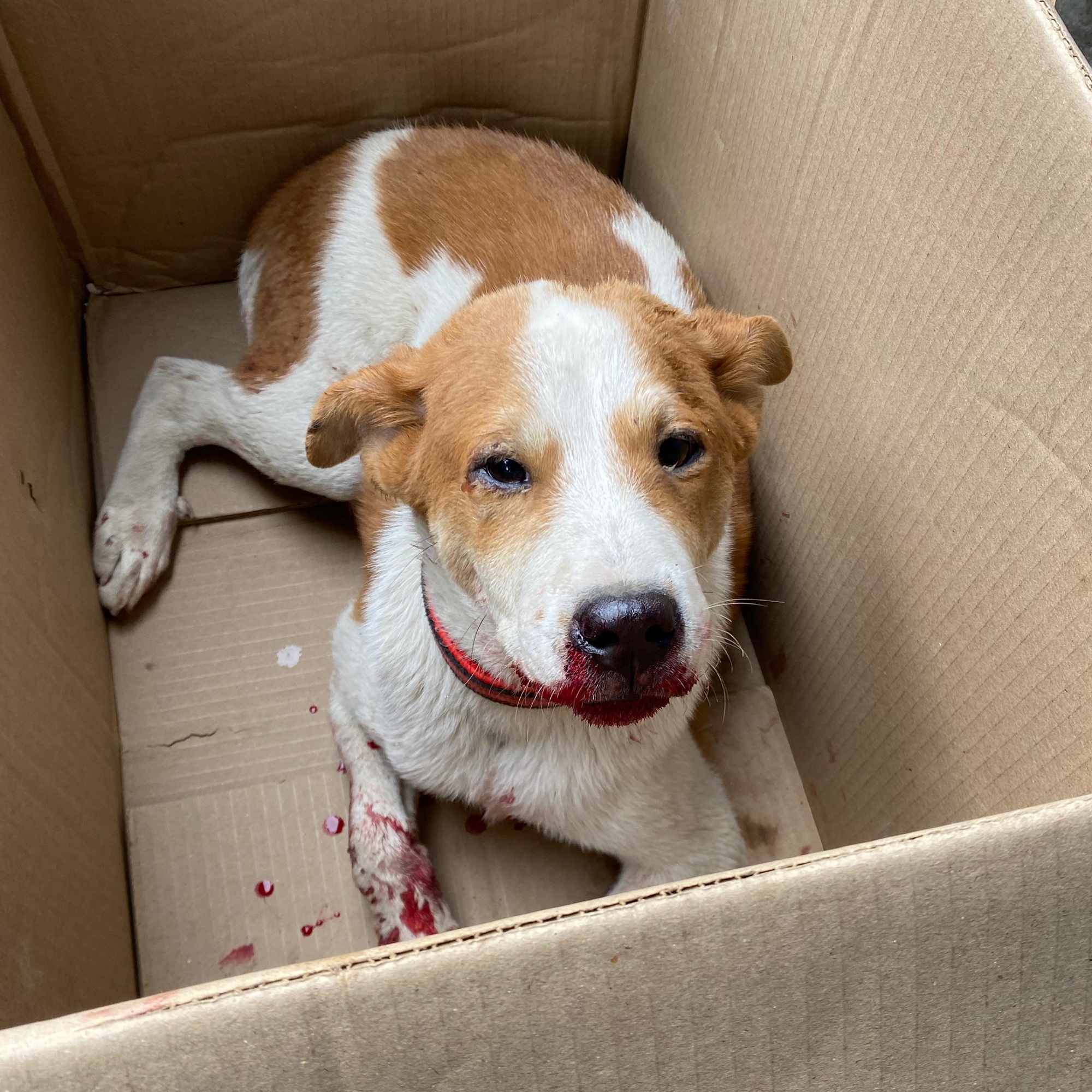 Leo was in terrible shape when he was saved by two local children who found him on the way to their school. Leo was bleeding badly, laying at the side of the road, whimpering and shaking. The boys took pity on him, found a cardboard box and carried him on foot for over an hour to reach KAT and get him to safety.